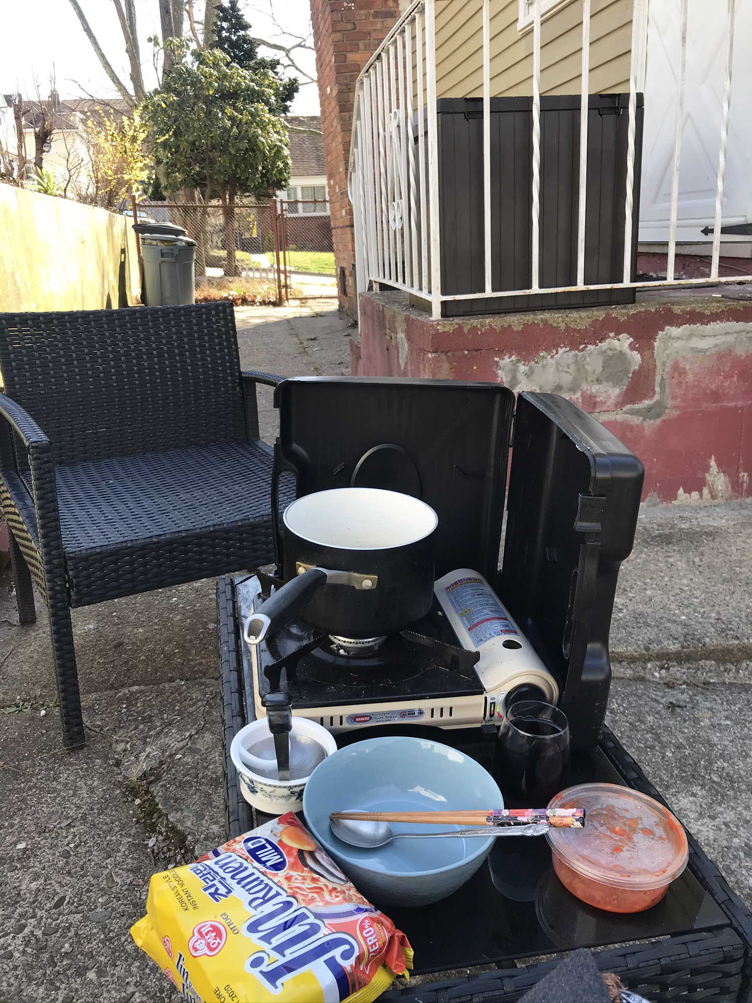 하도 답답해서 아직 추운 봄이었는데도 굳이 라면을 밖에서 끓여먹음. (근데 사실 락다운 며칠 안한 상황 ㅋㅋㅋ)