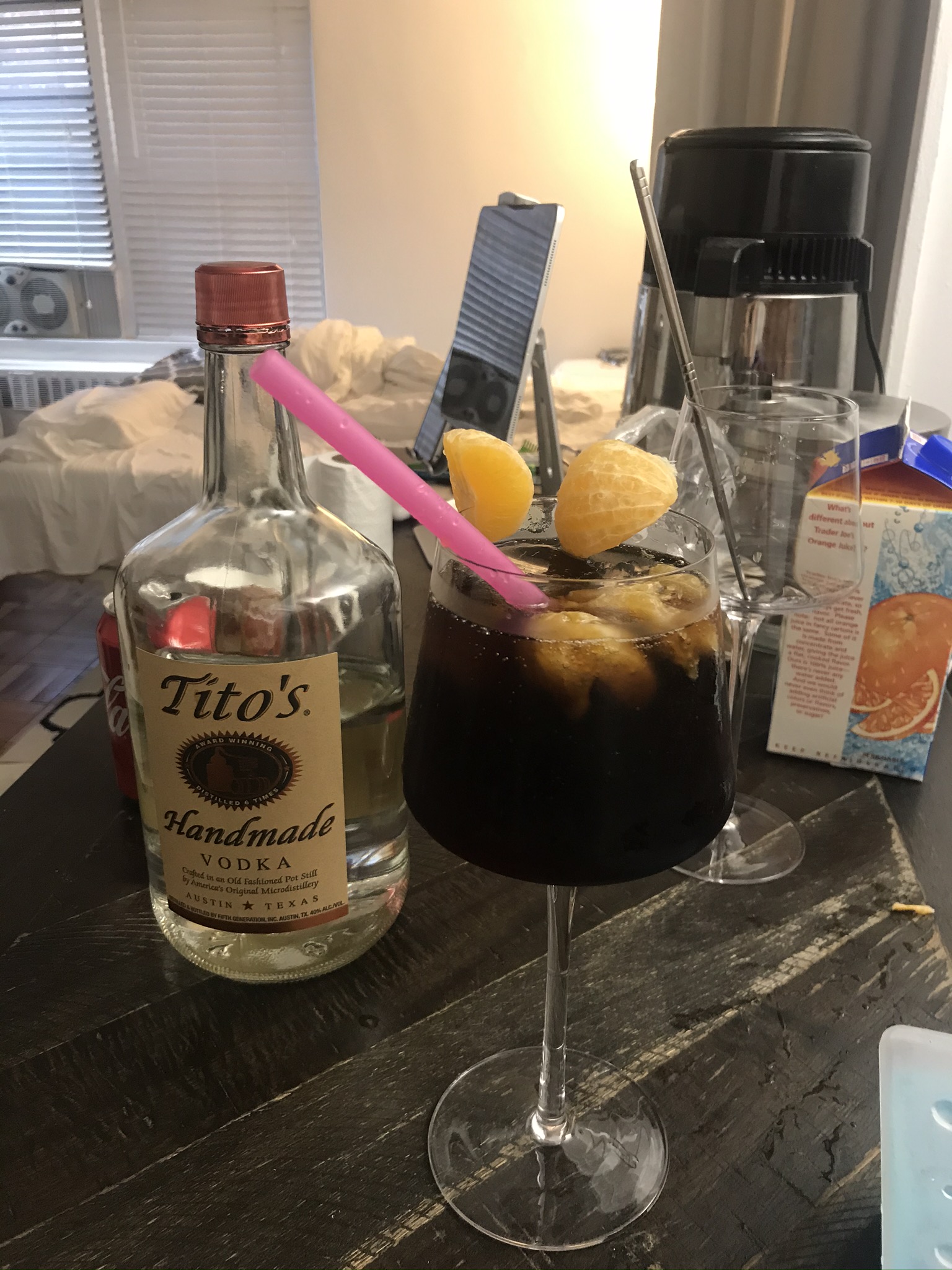 힘들게 뛰어 놀고오면 집에 와서 거대한 보드카 꺼내서 남친이랑 홀짝홀짝 ㅋㅋ 보드카랑 콜라는 평소 절대 안마시는 조합이지만, 집에선 그냥 있는걸로 섞어마신다.